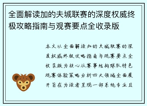 本文以“揭开加的夫城联赛的神秘面纱,探索足球世界的独特魅力与历史传承”为核心,试图从历史源流、文化底蕴、竞技精神与现代化革新四个角度,全面勾勒加的夫城联赛(Cardiff City、以及围绕其发展所形成的地域足球生态)在英国足球版图中所展现的独特意义。文章将从加的夫城足球文化的起点与发展脉络切入,分...